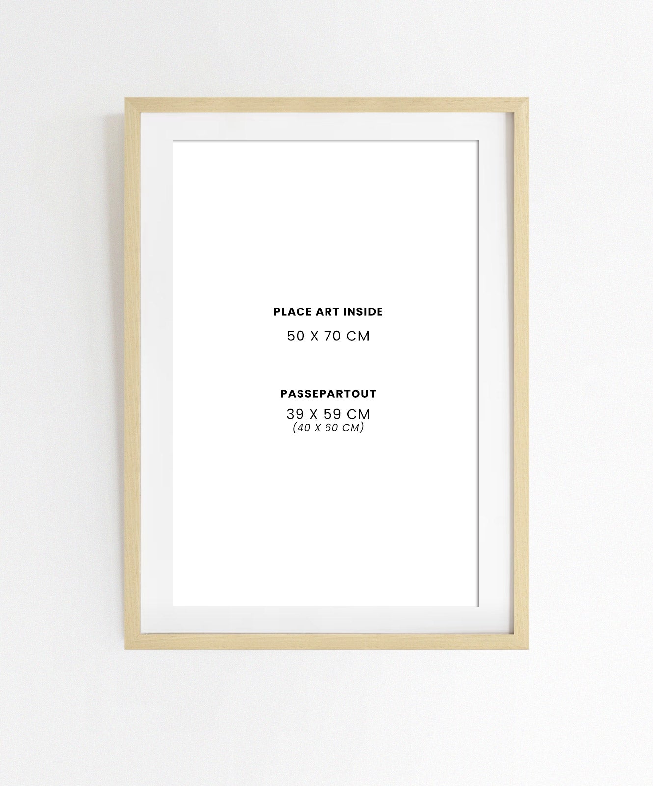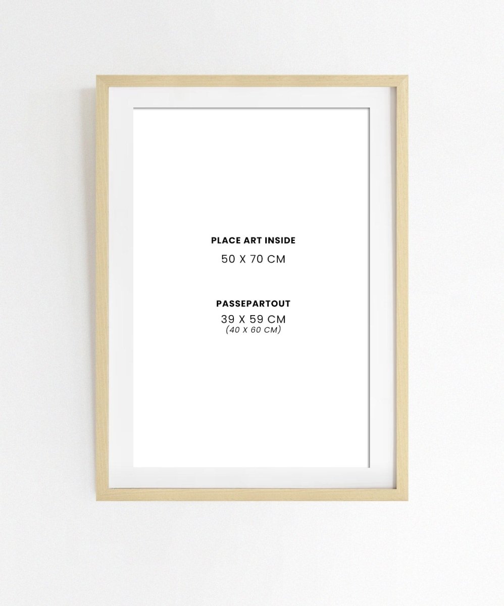 Natural Ayus wood frame with methacrylate and K-line rear base. The methacrylate is of high quality, 2mm thick, very lightweight and resistant to scratches and breakage. It has two sides for assembly, one matt (non-reflective) and the other glossy. The k-line is moisture resistant and is attached with flexible tips for easy attachment and removal.